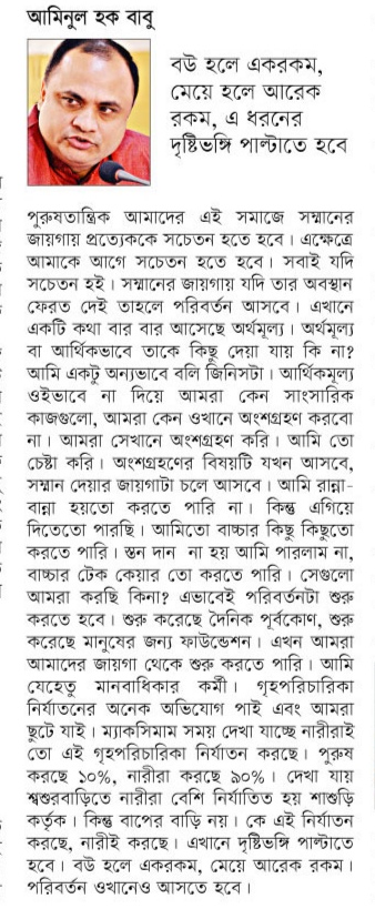 সভাপতির বক্তব্যে প্রফেসর হাসিনা জাকারিয়া বেলা বলেন, বর্তমান সময়ে বায়ু ও শব্দদূষণ মাত্রা ছাড়িয়ে গেছে। এর চরম নেতিবাচক প্রভাব পড়ছে জনজীবনে। এখনই এ বিষয়ে প্রয়োজনীয় সমাধান উদ্যোগ না নিলে পরিস্থিতি আরো দুঃসহ হয়ে উঠবে। আর বায়ু ও শব্দদূষণ প্রতিরোধে নাগরিক-সচেতনতা ও দায়িত্বশীলতা মুখ্য। এ ব্যাপারে সবাইকে যার যার অবস্থান থেকে দায়িত্ব পালন করতে হবে।